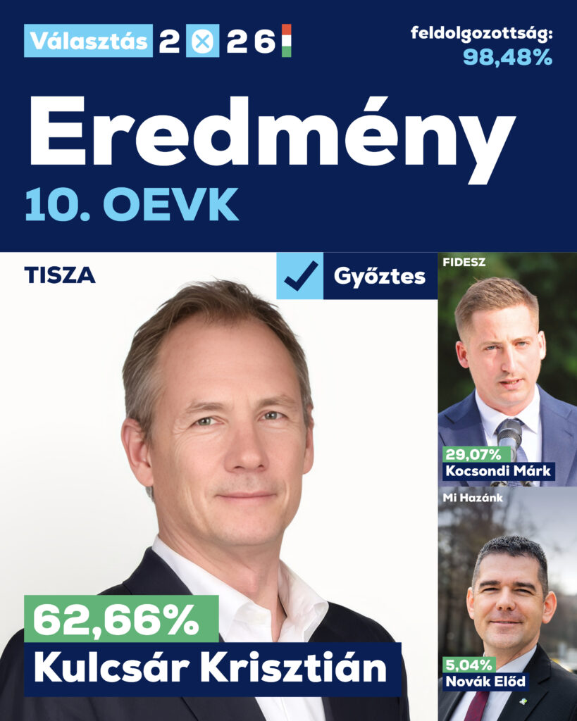 Újbuda összesen négy egyéni képviselőt ad az április 12-én megválasztott Országgyűlésbe. Mindannyian a Tisza Párt színeiben nyerték meg a körzetüket – meggyőző fölénnyel: az április 13-i, csaknem 99 százalékos feldolgozottság mellett mindegyikük a szavazatok több mint 60 százalékát szerezte meg. A Gellért-hegyet és környékét magába foglaló 01. számú országos egyéni választókerületet (oevk) a tanácsadóként Újbudán dolgozó Tanács Zoltán húzta be, a XII. kerület mellett Gazdagrétet és Őrmező egy részét felölelő 03. számú oevk-ban pedig Magyar Péter, a Tisza Párt vezetője és miniszterelnök-jelöltje lett a győztes. A Csepelen kívül Újbuda egy kisebb részére is kiterjedő 09. számú oevk-ban Kátai-Németh Vilmos ügyvéd szerzett bizalmat, az Albertfalvát, Kelenvölgyet és Kelenföld jó részét felölelő 10. számú oevk polgárait pedig ezentúl a világbajnok-párbajtőrvívó, a Magyar Olimpiai Bizottság egykori elnöke, Kulcsár Krisztián képviseli a parlamentben.